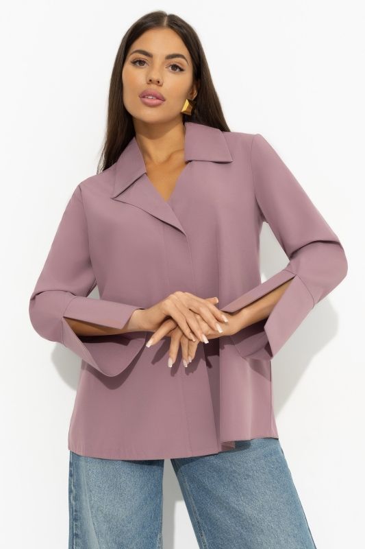 Блуза однотонная с разрезами на рукавах