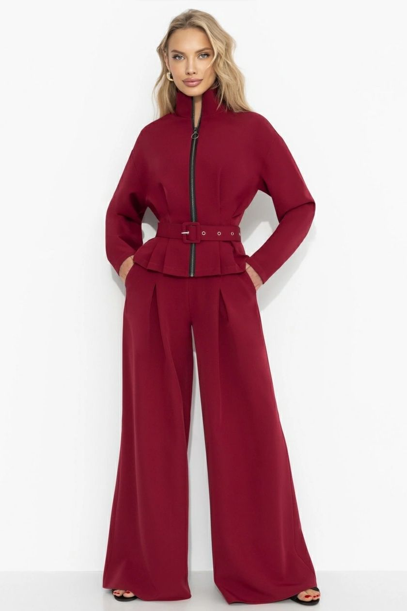 Костюм брючный бордовый спорт-шик