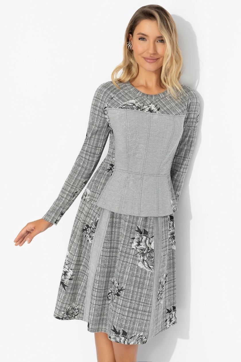 Костюм серый трикотажный с юбкой