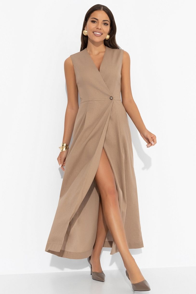 Платье бежевое льняное на запах
