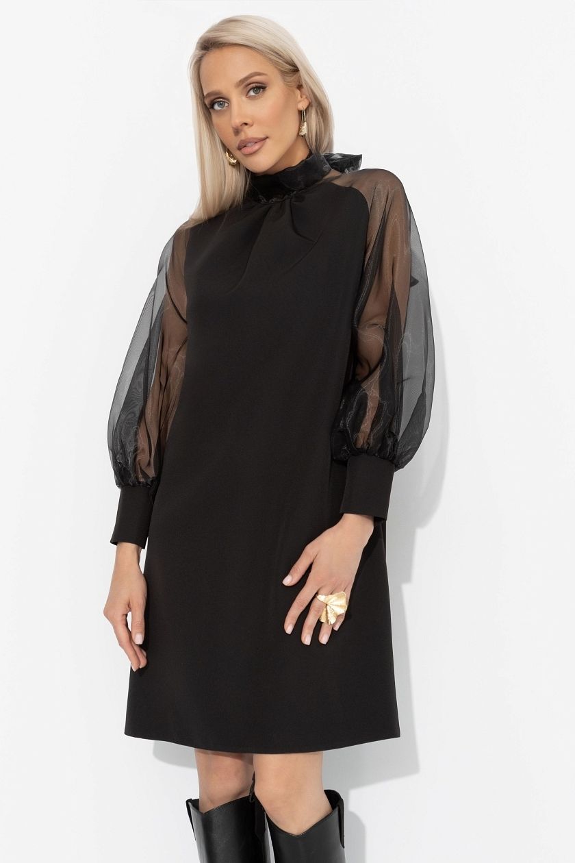 Платье чёрное с бантом из органзы