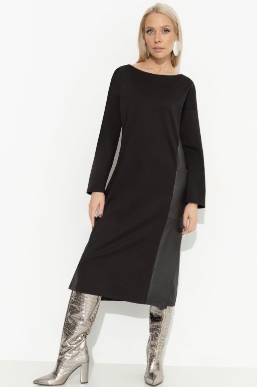 Платье чёрное с вставками из экокожи