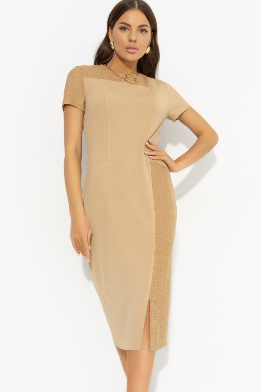 Платье-футляр трикотажное бежевое