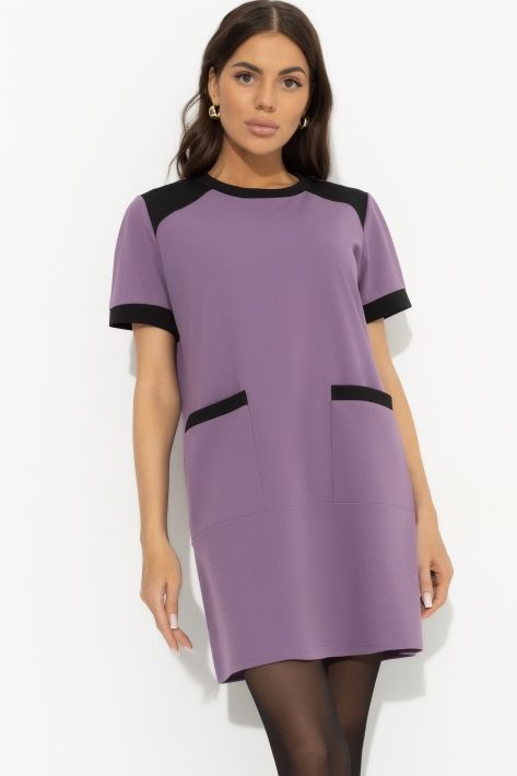 Платье мини сиреневое с накладными карманами