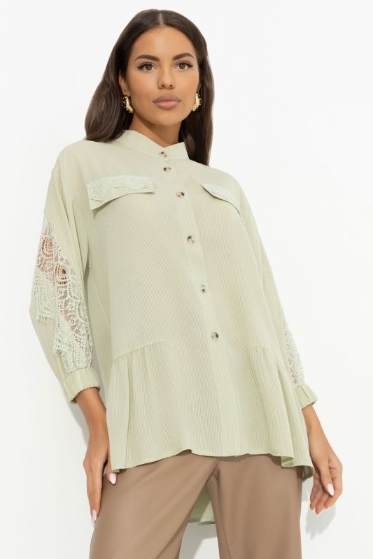 Рубашка зелёная с вставками из кружева