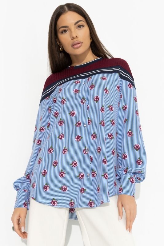 Свитшот комбинированный в полоску с цветочным принтом