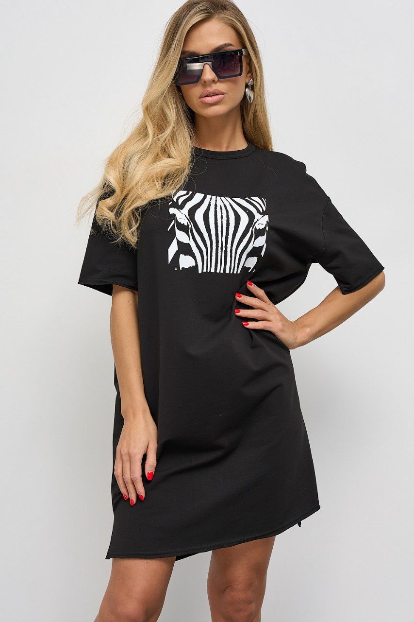 Платье-футболка чёрное с принтом