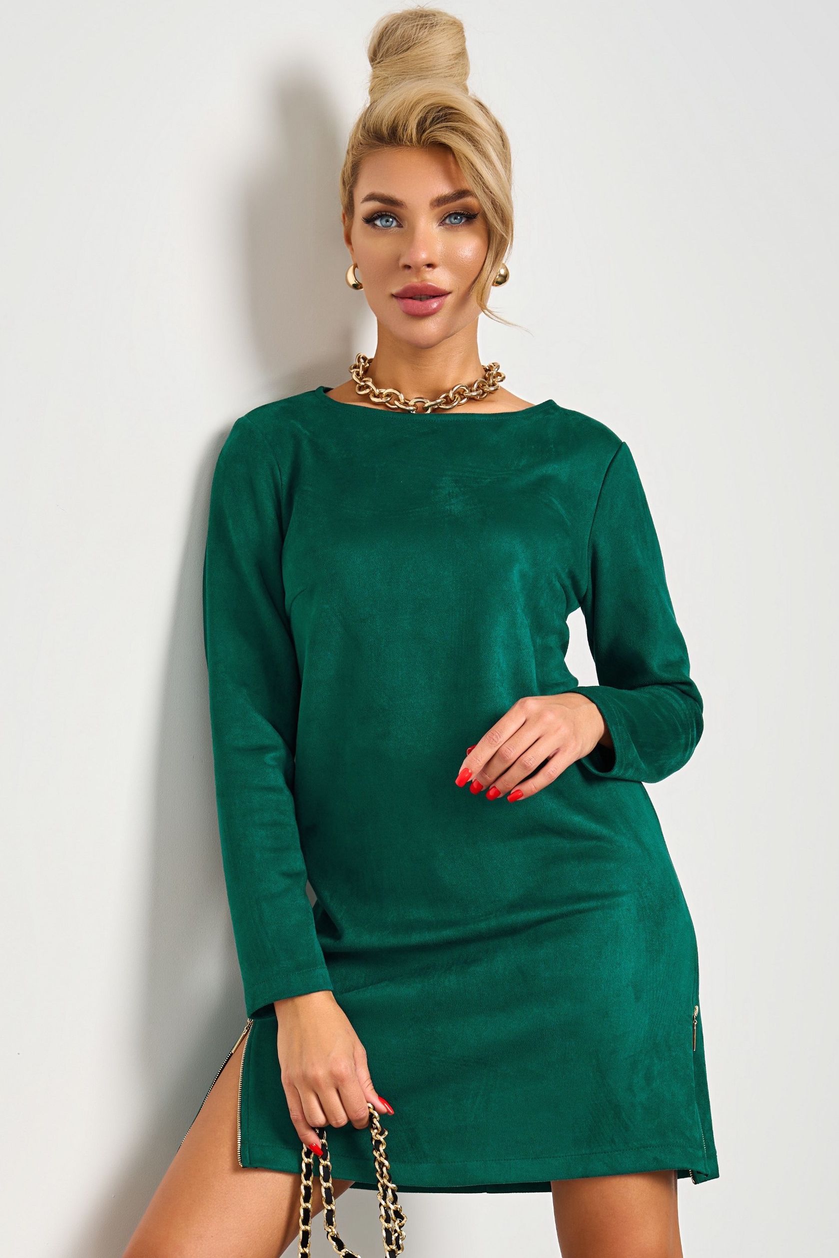 Платье зелёное из искусственной замши