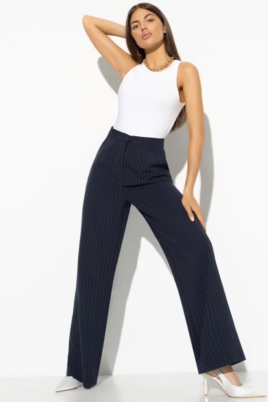 Брюки синие в полоску с карманами