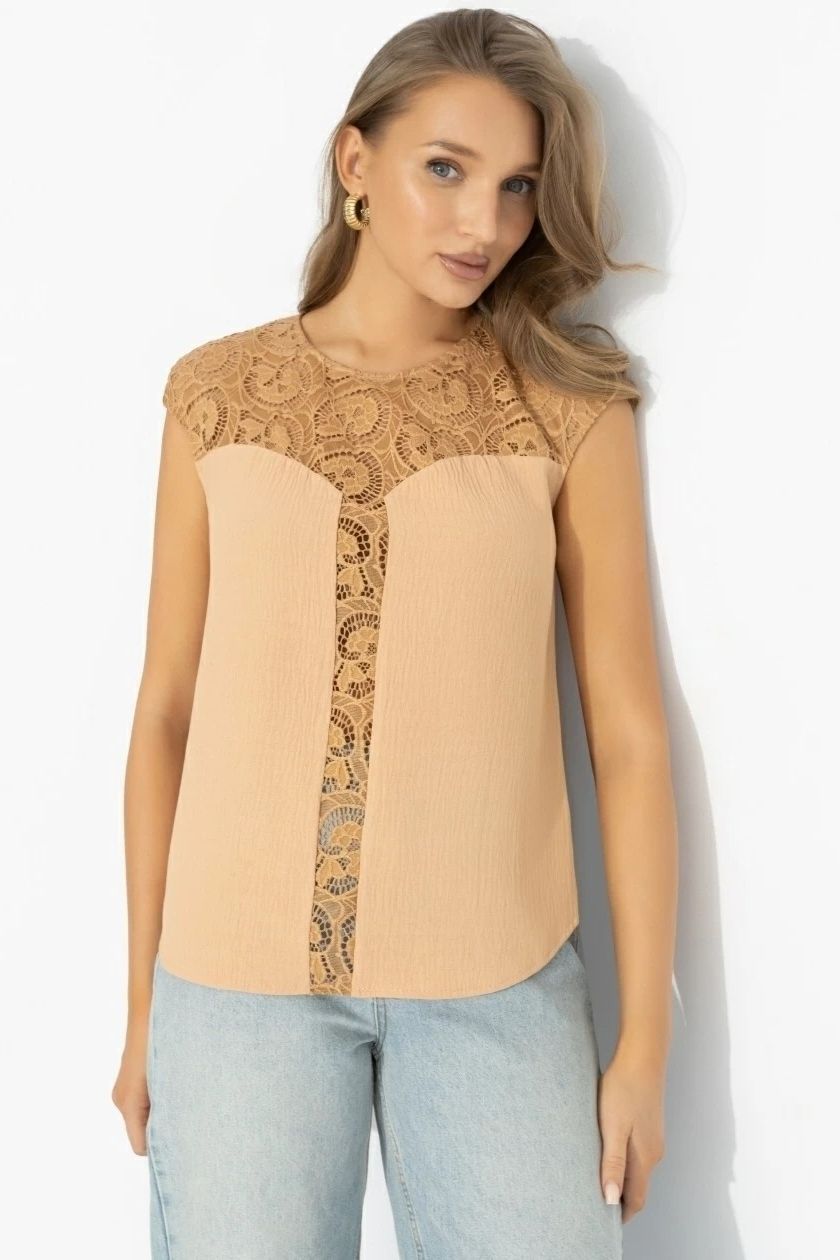 Топ бежевый комбинированный с кружевом