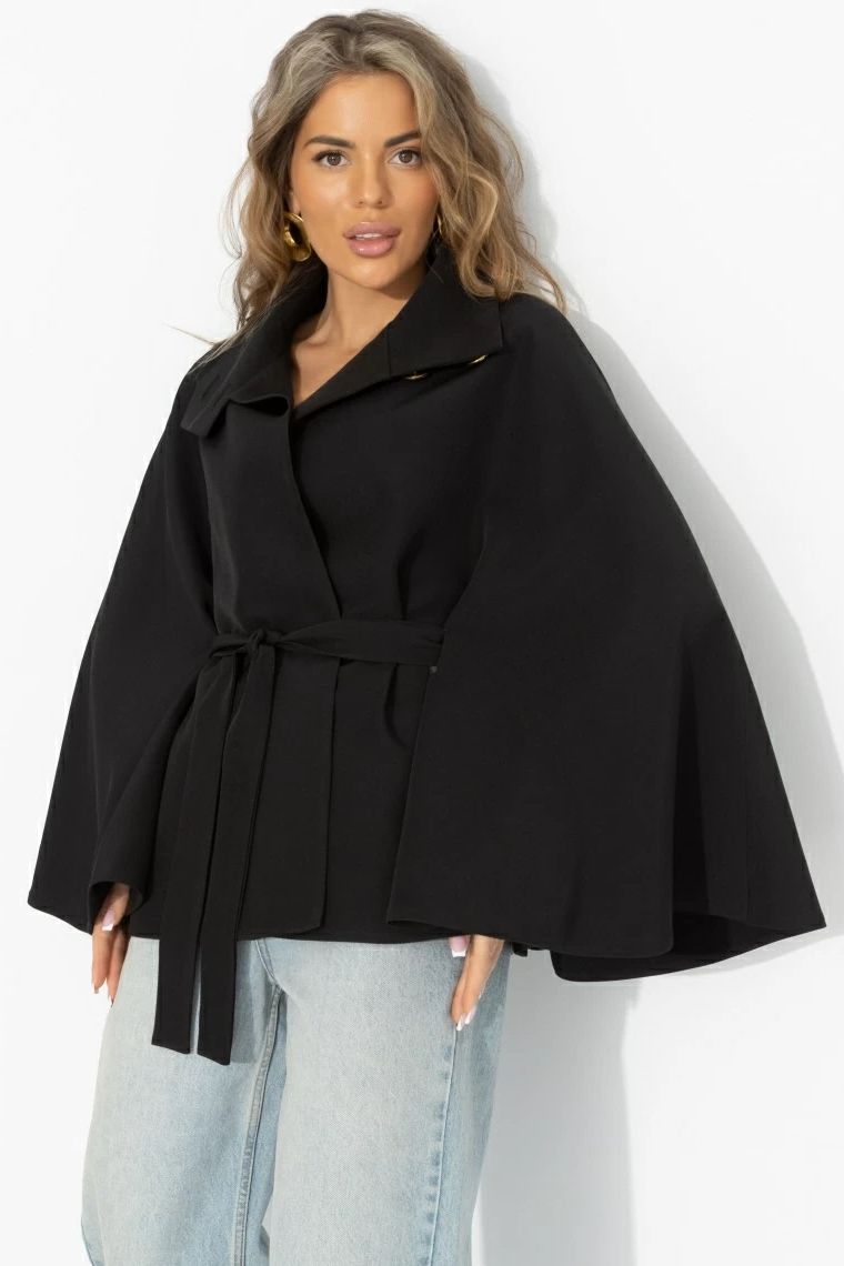 Жакет‑кейп чёрный с поясом