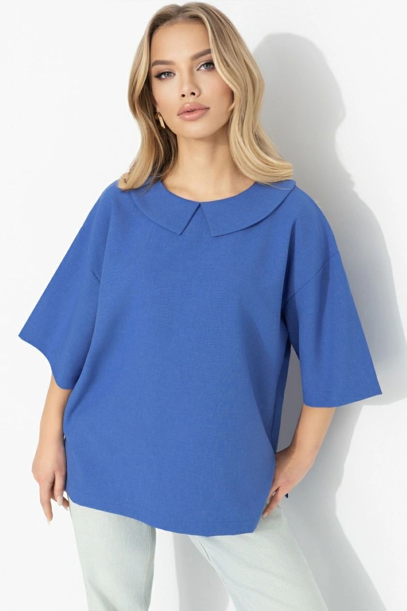 Блузка синяя свободного силуэта