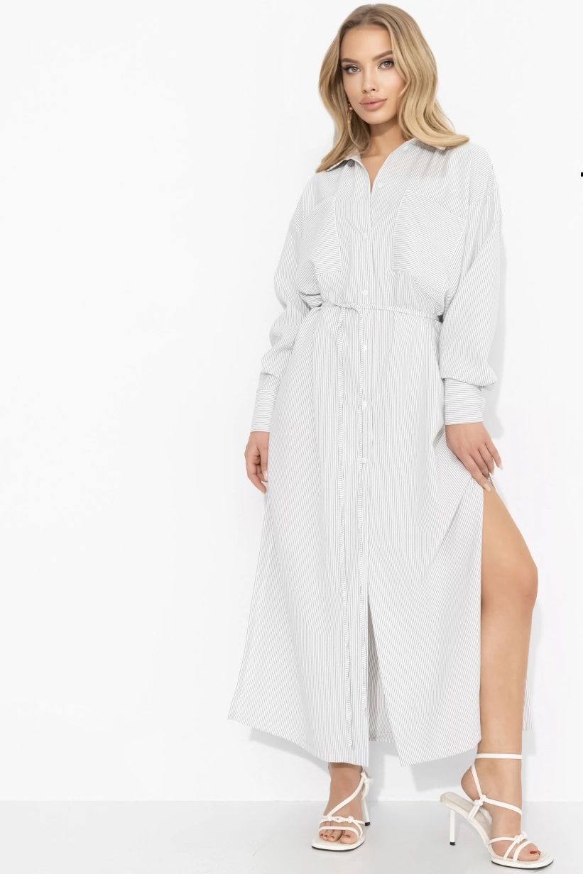 Платье-рубашка в полоску от компании Charutti, выполнено из льна. Свободный крой, длинный рукав, застёжка на пуговицы. Пояс для акцента на талии. Юбка легко струится и кокетливо отзывается движениям. И легенда продолжается – уже о тебе!
