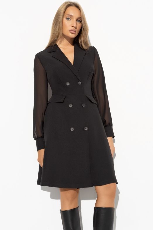 Платье чёрное на запах с рукавами из шифона 52 размера