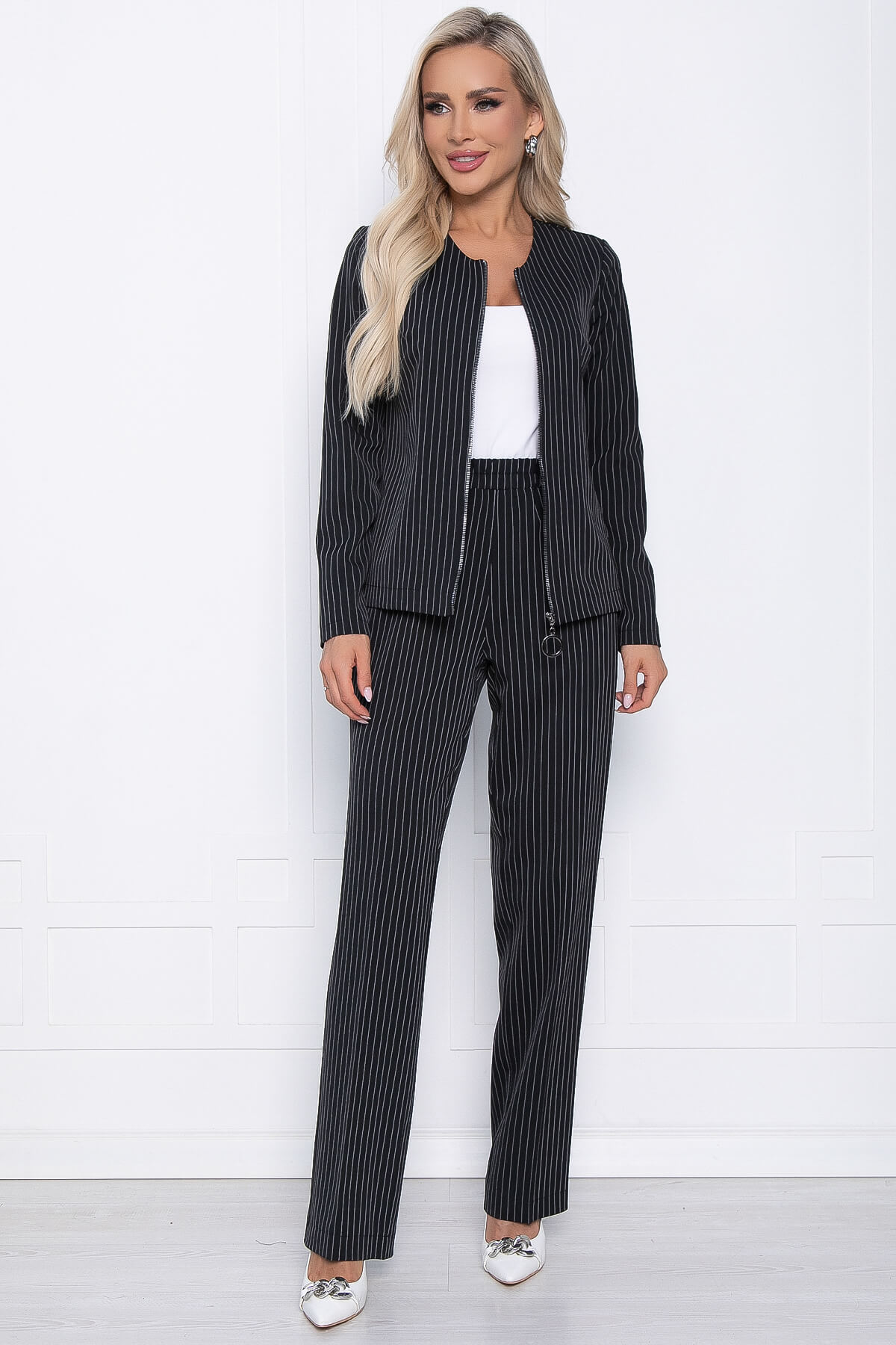 Костюм-двойка чёрный в полоску