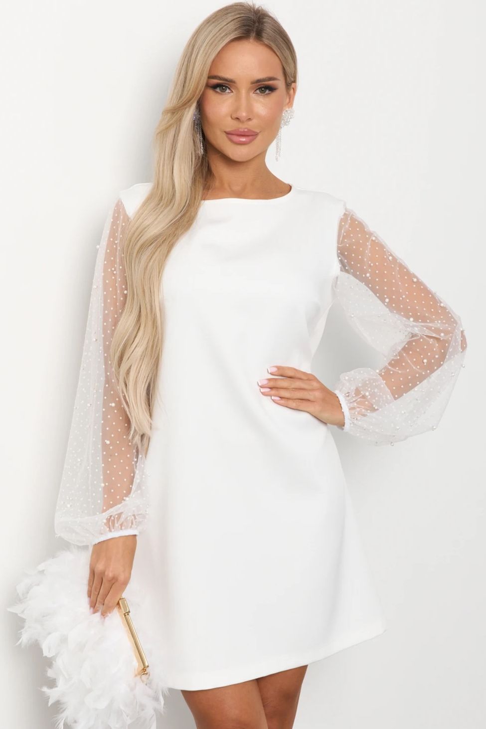 Платье белое с рукавами из сетки