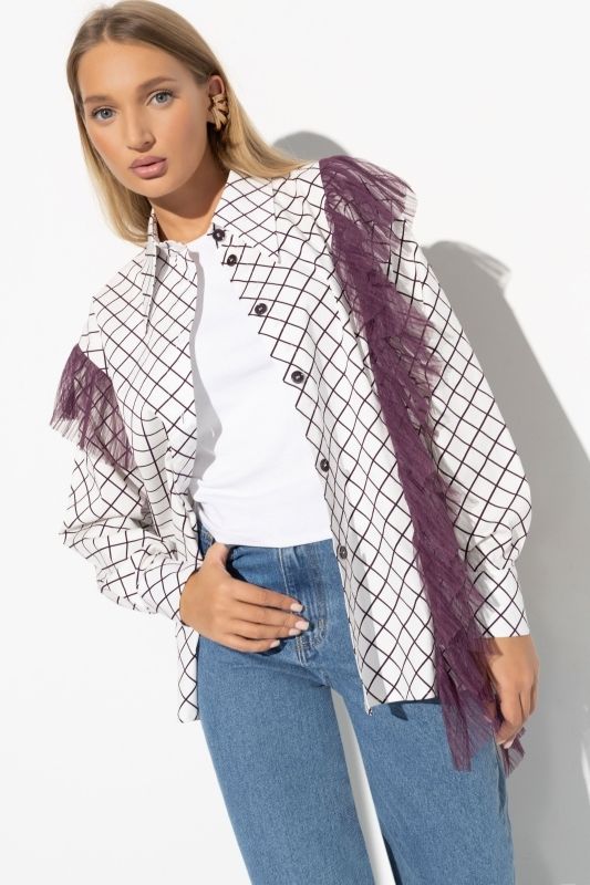Рубашка белая в клетку с воланом из сетки