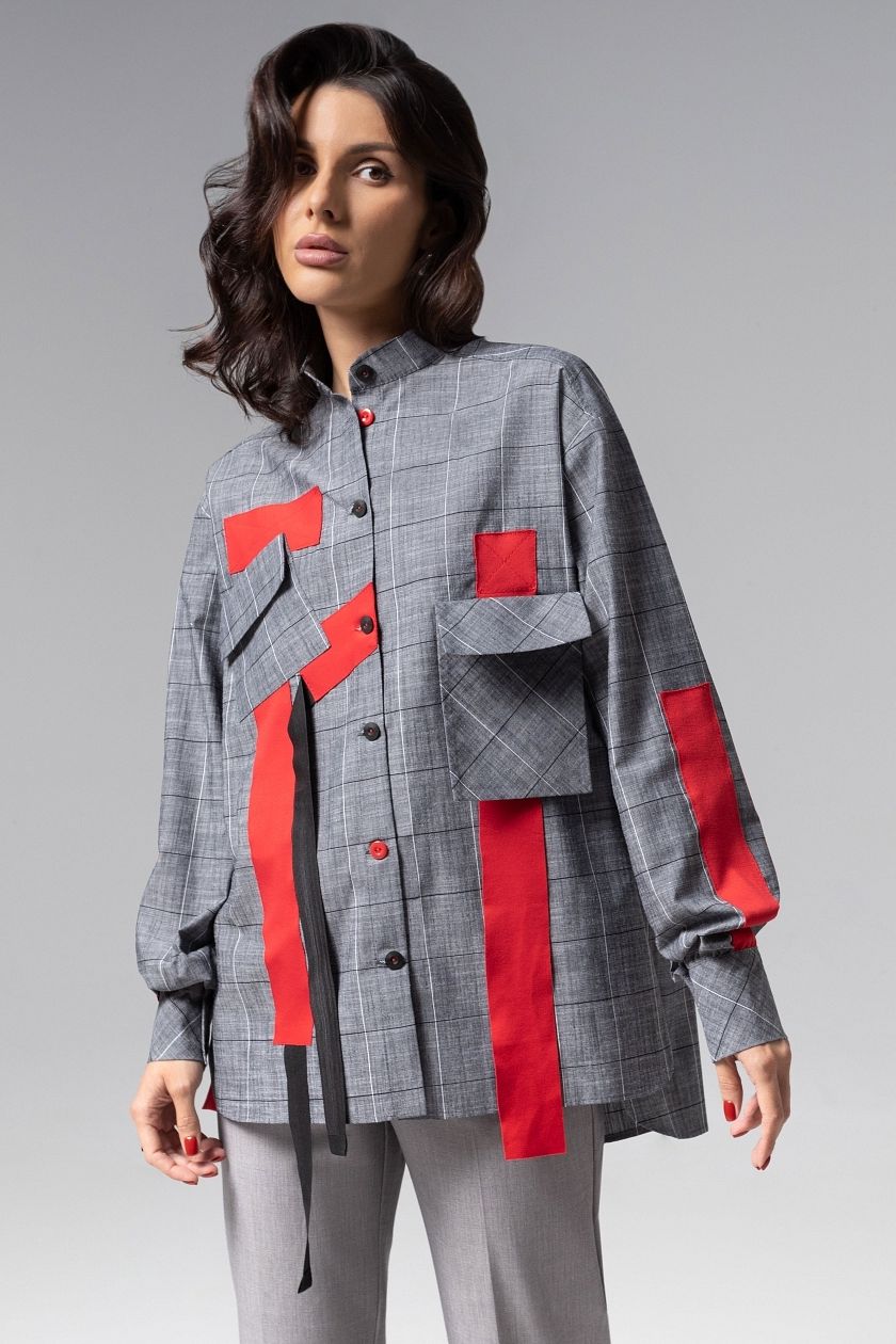 Рубашка серая дизайнерская в клетку