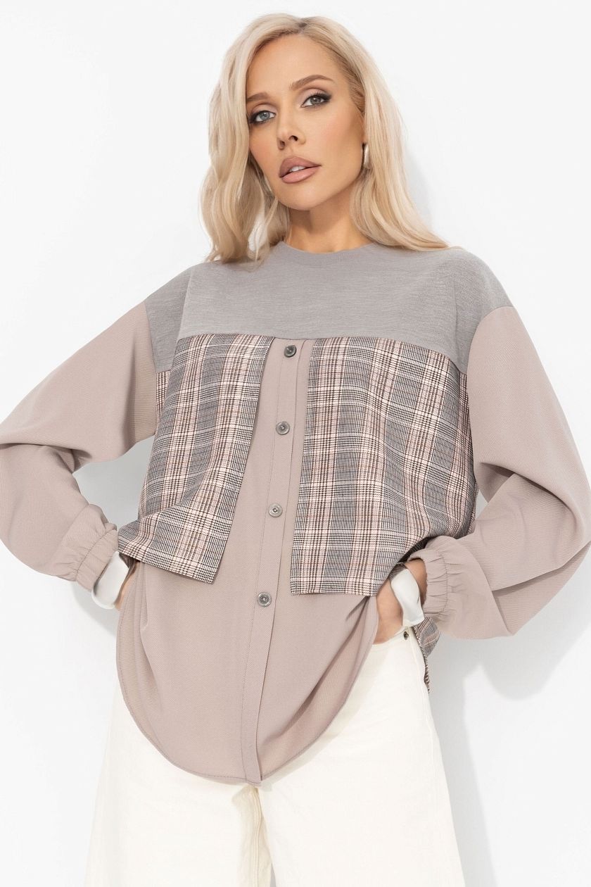 Свитшот комбинированный бежевый с имитацией рубашки
