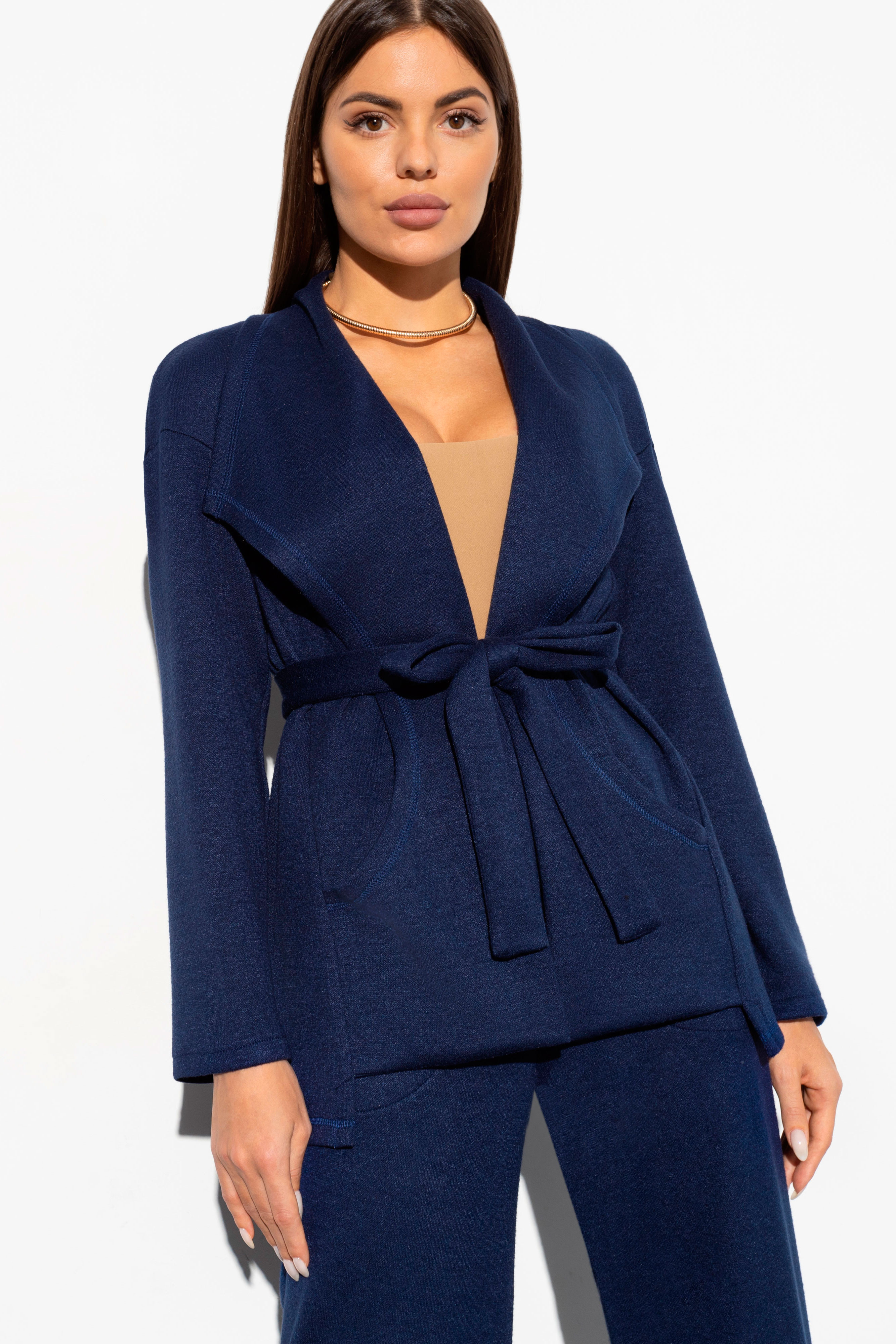 Синий кардиган с поясом 54 размера