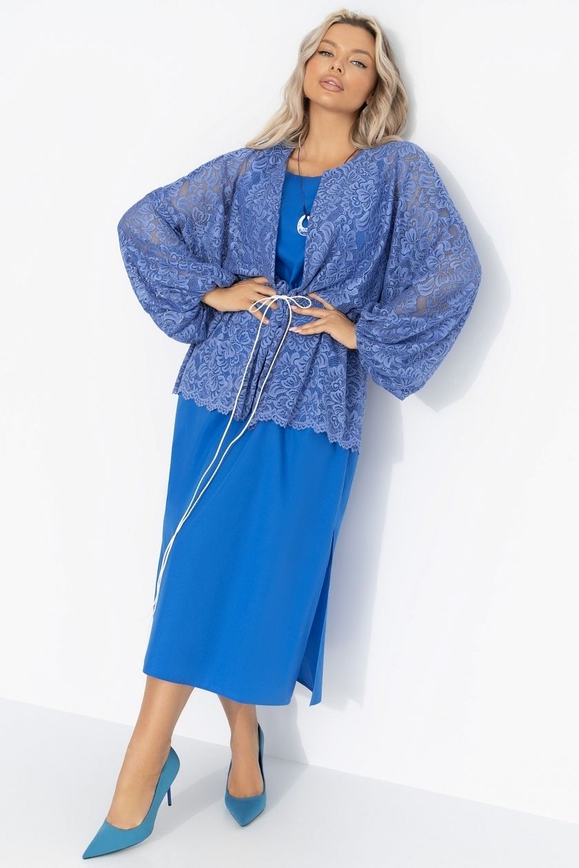 Костюм-двойка синий с кардиганом из кружева