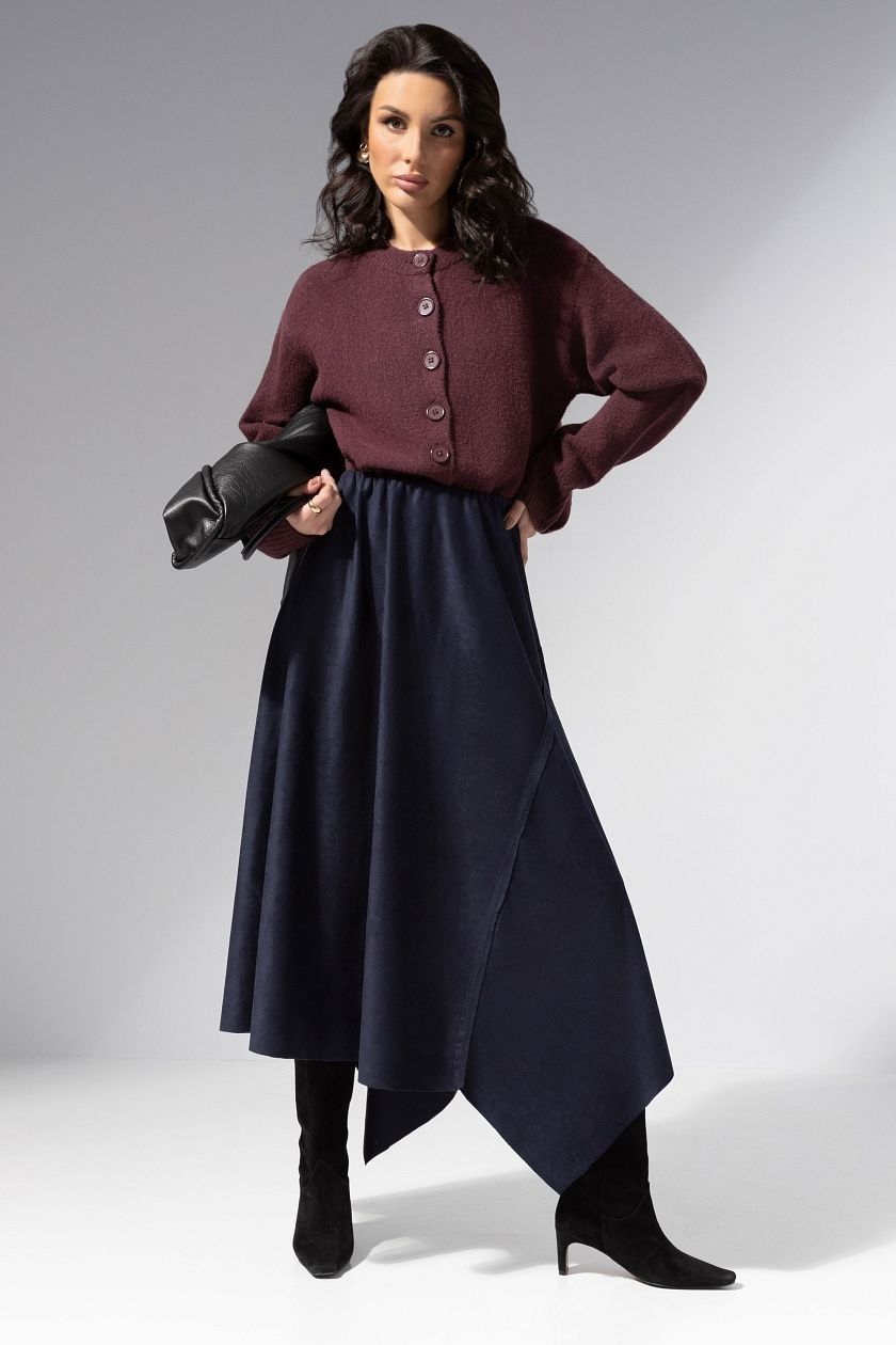 Юбка макси синяя из эко-замши асимметричного кроя
