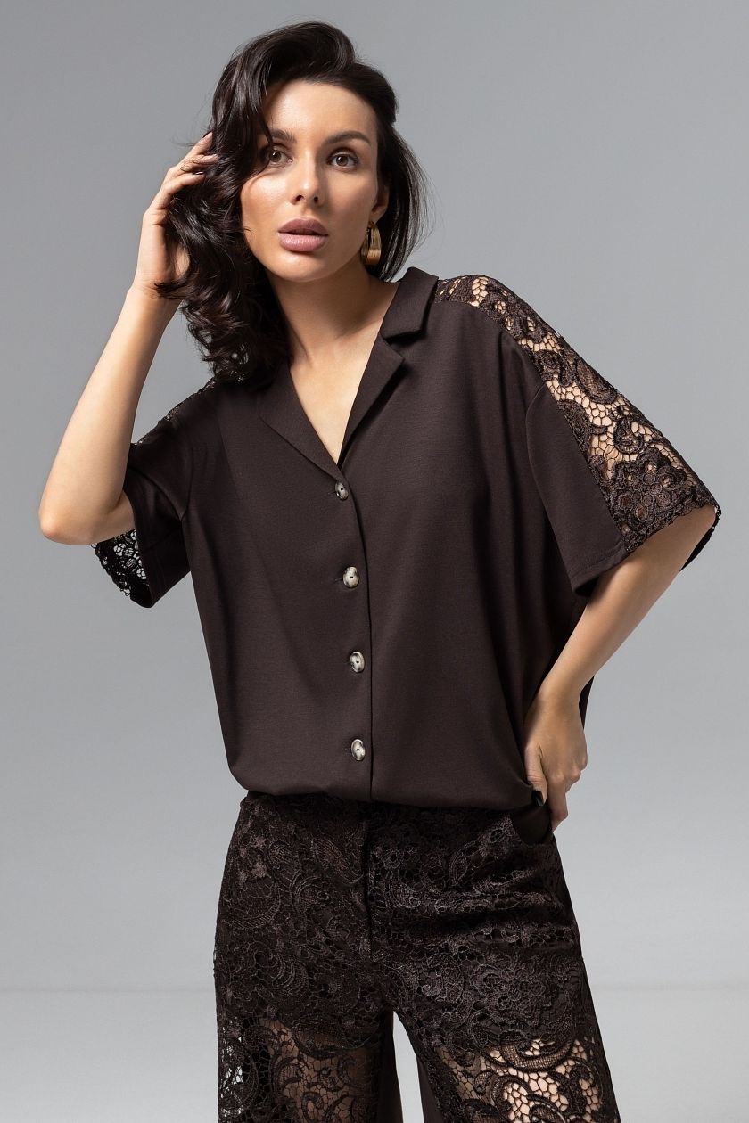 Рубашка комбинированная с кружевом