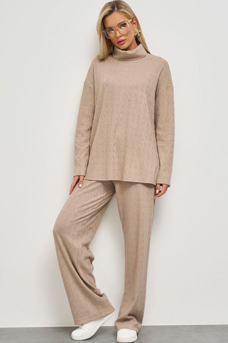 Брюки широкие бежевые трикотажные от компании Jetty. Притачной пояс на резинке. Без застёжек, карманов и подклада. Отличный выбор для создания стильного образа.