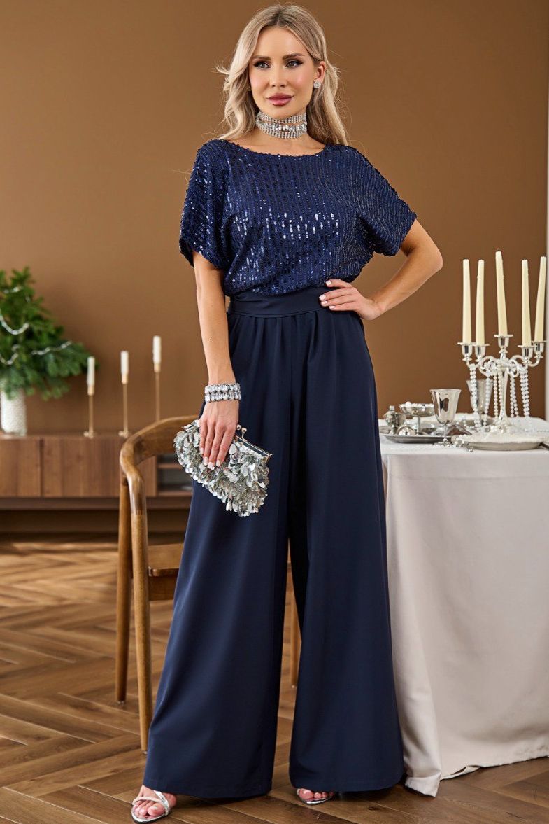Комбинезон нарядный синий с поясом
